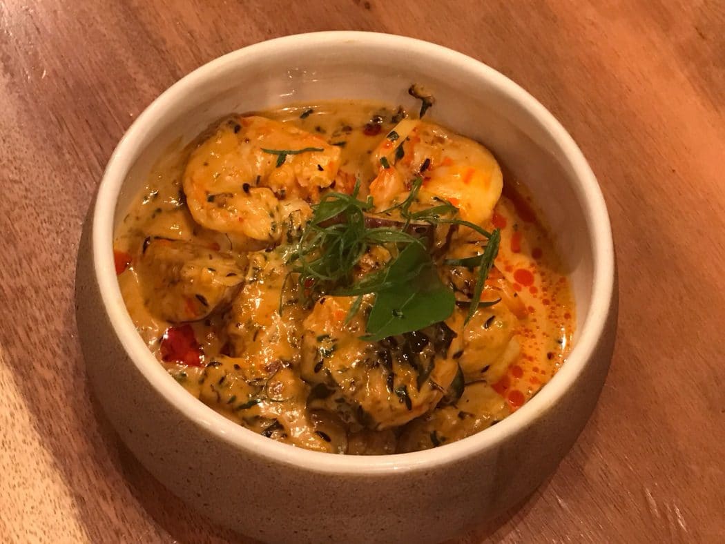 Grosses crevettes au lait de coco {« Prawns Down South » du chef Vicky Ratnani}