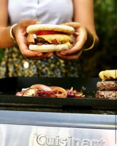 En fin de cuisson déposer le fromage en tranche sur la viande encore sur le grill, pour qu’il fonde.