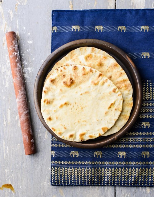 Avant ça, petite précision au sujet des naans, il s’agit d’un des nombreux pains Indiens qui a la particularité d’être à pâte levée**, il existe de nombreux pains Indiens, ronds et plats, comme par exemple le chapati qui est le pain le plus communément mangé. Le naan, plus long à préparer, sera servi à des occasions plus festives et surtout se sert immédiatement. Le naan au fromage n’aime pas être réchauffé…