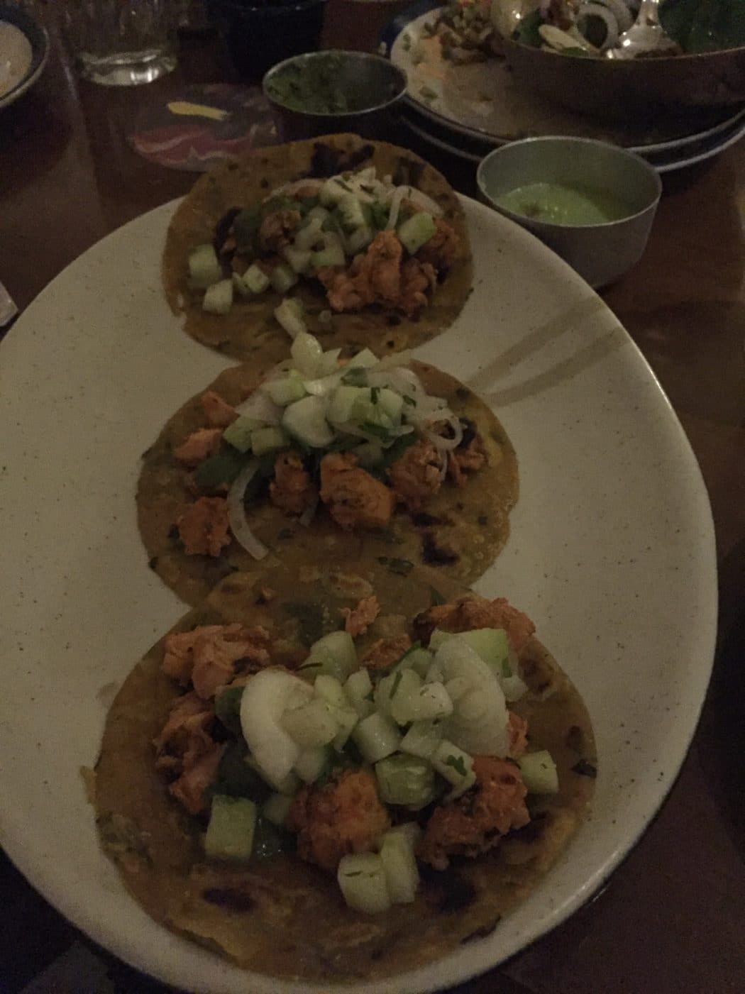 Laal Maas Phulkas : Paneer et roti, chutney menthe façon tacos.