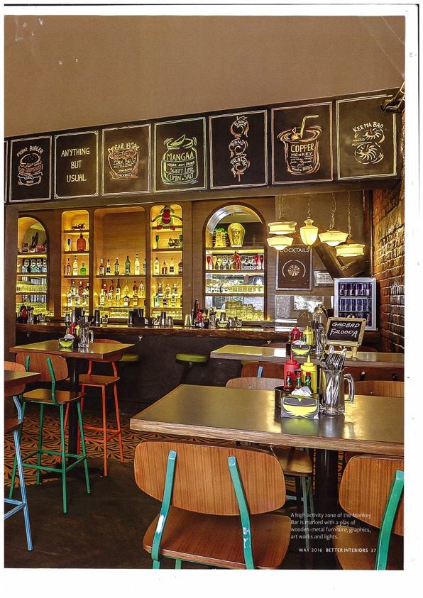 Le monkey Bar est l’exemple parfait des « bars à manger & cocktails bars » que l’on trouve à Paris, où l’on sirote un bon cocktail ou une verre se vin, en grignotant une petit assiette, mais ici, bien entendu avec une forte influence indienne !